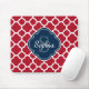 Red Lattice Pattern Navy Monogram Mouse Pad