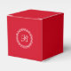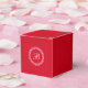A personalized favour box in red featuring a white laurel wreath and custom monogram that you can edit with your own monogram. To change the font or if you need to re-centre the monogram after changing it, select the "customize it" button. This favour box makes a nice choice for receptions, parties, corporate events, and more.