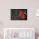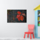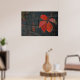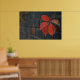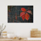 A poster showing red leaves with the dark wall as a background