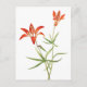 Red Lily Flowers - Lilium montanum - Vintage Botanical Art Postcard.