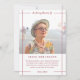 In loving memory photo announcement in a clean minimalist design with a white background and red details. Personalize with a photo of your loved one, their name, years living, and a text about their life and spirit.