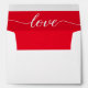 Simple, elegant, and modern, the love script with long tailed embellishments add a romantic feel to these wedding envelopes. Personalize with your names and return address, red lining and "love" script envelope. Find the matching invitation from the collection.
