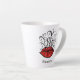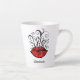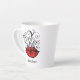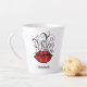 Fashion and makeup lover personalized latte mug with a weird lips gothic design featuring an ink drawing of a mouth with red lipstick decorated with white dots and strange swirls and customizable name.