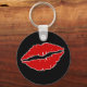 This keychain is the perfect gift for Valentine's Day! It features a cute illustration of bright red lips with a white outline, placed on top of a black background.