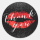 Red Lips Kiss Black Glitter Thank You Classic Round Sticker