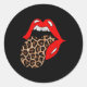Red Lips Leopard Tongue Animal Print Classic Round Sticker