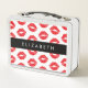 Red Lips, Red Lipstick, Pattern Of Lips, Your Name Metal Lunch Box