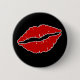 This button is perfect to decorate your bag with or to wear on Valentine's Day! It features an illustration of bright red lips on a black background.