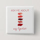 Ask me about my lipstick promotional pin button for lip colours LipSense distributors with different shades of red colour swatches from pink blush and fuchsia to ruby red, garnet and red burgundy. Personalize it with your text or let the text as it is.