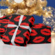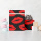 Red Lipstick Kiss Pattern Black Wrapping Paper