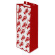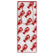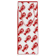 Red lobster pattern wine size gift bag. Lots of lobsters crawl across the front and back of this tall bag meant to hold a bottle.