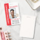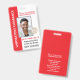 Bright red and white facility entry badge with bold vertical text is ideal for department specific clearance. Easily upload multiple logos and an employee photo. This can hang on a matching lanyard that also holds a company key card. This company badge is versatile for red, white and grey company lanyards. Perfect for engineering, healthcare, or law enforcement facilities where staff identification is important. Perfect for government buildings where employees have different clearances.