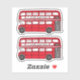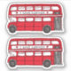 Stickers featuring an illustration of a classic red double decker bus with the text "I love London" on the side. Loose, hand-drawn style.