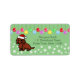 Red Long Haired Dachshund cartoon Christmas Mint Green Address Labels for Doxie fans!! A Cute Dachshund is sitting like a model with his/her Santa Hat!! Colourful Ornaments and tiny snowflakes in the background. You can customize text and more! Unique and funny Dog Art created by Naomi Ochiai from Japan.