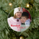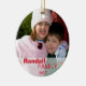 Feature your favourite family photo with this easy to customize Christmas ornament. This memento shows off your favourite family moment with customizable text across the transparent band. The optional backside features the peace sign with the words "PEACE, LOVE, JOY". Preserve your life moments with these holiday ornaments so your family may cherish them year after year.