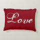 Red "Love" accent pillow with Black and White Damask back.