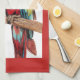 Red Macaw Parrots Bird Watercolour Kitchen Tea Towel Man's Name, with a fully customizable name. Let these beautiful birds brighten your day! Designed from one of my original watercolors. Sure to put a smile on the receivers face.