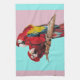 Red Macaw Parrots Watercolour Kitchen Aqua Pink Towel