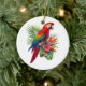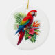 Red macaw tropical floral ceramic ornament