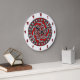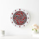 This concentric circle design contains layers of geometric patterns that resemble gears that you might find in modern or even alien machinery, in shades of red and grey.