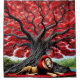 This cool shower curtain has a huge red tree and a lion with a red mane pictured on it.