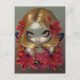 Red Maple Fairy - part of my "Flowers" series, this lovely big eyed fairy portrait is accented with beautiful red maple leaves! There are also some of the red flowers that pop up occasionally on maple trees, and those little seed pod doo-dads that flutter down (we used to call them "helicopters"). A nice autumn-y feel to this one. My own original acrylic painting.