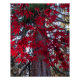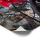 Liven up your living space with this glossy style poster print that features the photographic image of a branch of flaming, red maple leaves along with a Giant Sequoia tree in the background. A stunning, botanical image! Customize your poster size as desired. Frame not included.