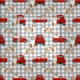 Red Merle Aussie and red truck fabric