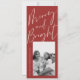 This single photo holiday card design features a trendy handwritten style script in a "Merry and Bright" greeting, with plenty of room on the back for a long family message. The background of the card is red, but you can customize and personalize this card however you would like.