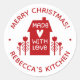 A personalized "made with love" sticker featuring a cute little red house with a heart and the words, made with love. Personalize it by adding your own name. A pretty finishing touch for all of your homemade Christmas gifts. Designed for you by Blackberry Boulevard.