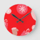 Red Merry Christmas Ornaments Snowflakes Gloves Round Clock