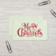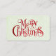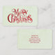 Business cards with a fancy typographical design with a festive font in red which says Merry Christmas.