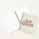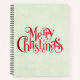 Spiral notebook with a fancy typographical design with a festive font in red which says Merry Christmas.
