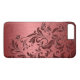 Red tones metallic brushed aluminum look with dark burgundy red floral lace and swirls. Available on other products and many different colour combinations. Customizable and optional monogram