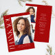 Red Modern Elegant Vertical Three Photo Graduation Thank You Card features a fun and modern type, along with your graduation photo. Add your note of thanks on the back, or leave blank for a handwritten message.
