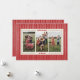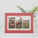 This holiday card features a red striped background framing three customizable photos in this rustic Christmas card with modern farmhouse charm. Customizable greeting reads "Merriest Everything" The back includes a matching striped pattern to complete the unique design.