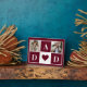 A colourful design featuring 2 family photos full of beautiful memories of dad, in a background of red. Upload your photos to personalize.