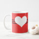 Sweet and charming Modern Heart Mug featuring a dark red background and a cute heart and striped border. This cute and girly mug is perfect for enjoying your favourite hot beverage! Customize with the text of your choosing. Click on "Customize" to find additional personalization options.