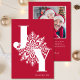 Celebrate the magic of the season with this elegant Christmas photo card featuring a bold “JOY” design, accented by a beautifully intricate snowflake. Set against a red background with white bold font, this card blends timeless tradition with a touch of contemporary style. Personalize with your family photo and name for a heartfelt holiday greeting your loved ones will cherish. Perfect for spreading peace, love, and joy this festive season.