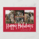 Red Modern Lettering Five Photo Happy Holiday Postcard