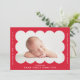 Red Modern Scalloped Photo Frame Birth Announcement