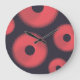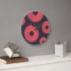 Abstract pattern made with repeated geometric, transparent shapes forming circles, Modern, playful, fun vector art in red, grey colours.