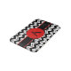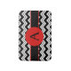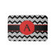 Make a fashion statement with your home decor with this mat monogrammed with your initial. Use in the bath, kitchen, bedroom or any room in the house. The Chevron ziz zag (zizzag) graphic design is one of the hottest art and design trends, and is extremely popular from fashion to home decor. This sophisticated black and white chevron rug is given an eye popping dash of colour with a red circle for personalizing with your monogram initial and sits on a black strip with red edges. Easy to customize!