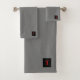 RED MONOGRAM INITIAL T ON GRAY BATH TOWEL SET