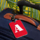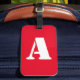 Design features a bright, red background to your monogram in clear, white-stenciled lettering. Makes finding your luggage just a bit easier! Available in a variety of colours.