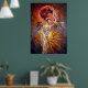 This surreal spiritual art poster features a powerful symbolic composition with a red moon, a graceful crane, and mystical elements that represent balance, wisdom, and inner awakening.