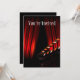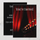 Elegant and simple with soft mood lighting. Featuring a velvet red movie theatre curtain in the background and a directors clapboard in the foreground. Great for movie night.