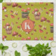 Red Mushrooms Pattern Monogram Initial Kitchen Towel
