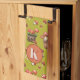 Kitchen towel with red mushrooms design and place for a single initial. Moss green dish cloth with Amanita mushrooms, in baskets and singles they make a fun design to use in any kitchen. Place your single initial in bold off-white text with shadow effect, over a light red circle near the bottom centre of the towel. Makes a nice, personalized housewarming gift.