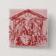 Simple and elegant nativity scene Christmas ornament, featuring a pale red speckled background with a rich dark red stamp of Mary, Joseph and baby Jesus inside a small manger with the bright star above them.